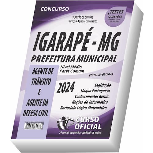 Cargos: agente de trânsito - agente de defesa civil Tipo: impressa Páginas: 262 Escolaridade: nível médio Órgão: prefeitura municipal de igarapé-mg - edital nº 02/2024