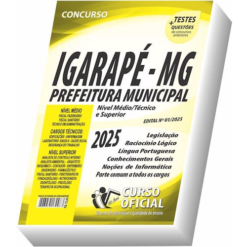 Edição impressa atualizada - elaborada por professores especializados em concursos públicos do curso oficial - são 25 anos de experiência e aprovação dedicados a você, . Cargos: nível médio - fiscal fazendário - fiscal sanitário - técnico em administração - cargos técnicos: edificações - enfermagem - laboratório - raios-x - saúde bucal - segurança do trabalho - nível superior - analista ambiental - analista do controle interno - arquiteto - bioquímico - contador - enfermeiro - engenheiro - farmacêutico - fiscal sanitário - fisioterapeuta - fonoaudiólogo - nutricionista - odontólogo - psicólogo - terapeuta ocupacional Tipo: impressa Páginas: 280 Escolaridade: nível médio, técnico e superior Órgão: prefeitura municipal de igarapé-mg - edital nº 01/2025 Conteúdo do material: Legislação Raciocínio lógico Língua portuguesa Noções de informática Conhecimentos gerais parte comum a todos os cargos Você receberá ainda: Testes, provas e questões de concursos anteriores; Atualizações, se houver alguma mudança no edital; Prova do último concurso; Edital do concurso. Marca: Não Informado Ean: 7908831305284