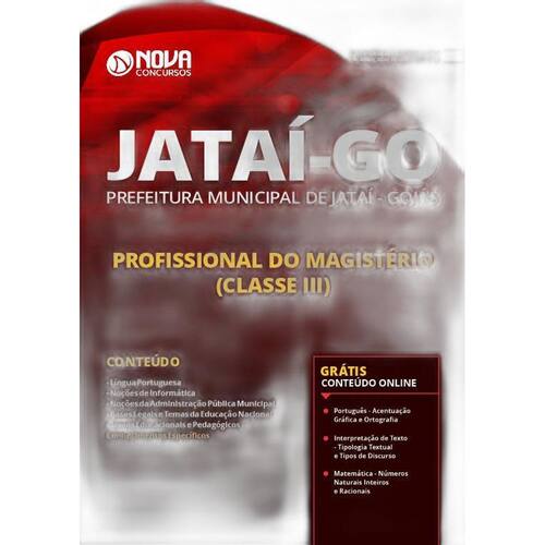A Apostila para Profissional do Magistério Classe III do concurso Prefeitura de Jataí - GO 2019 foi rigorosamente elaborada conforme o edital, o que torna o seu conteúdo completo e atualizado.