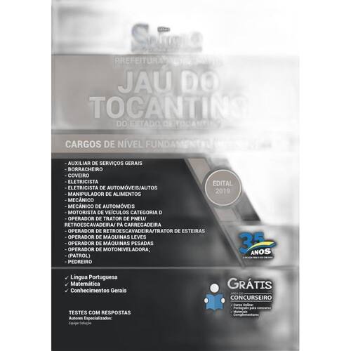 A Apostila para Comum aos Cargos de Nível Fundamental Incompleto do concurso Prefeitura de Jaú do Tocantins - TO 2019 foi rigorosamente elaborada conforme o edital, o que torna o seu conteúdo completo e atualizado. O conteúdo da Apostila e distribuído de forma interativa e simplificada, justamente para facilitar os seus estudos. Marca: Editora Solucao