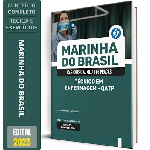 Apostila marinha do brasil 2025 - corpo auxiliar de praças cap 2025 - técnico em enfermagem - qatp Apostila para marinha do brasil - corpo auxiliar de praças cap 2025 para o cargo de técnico em enfermagem - qatp