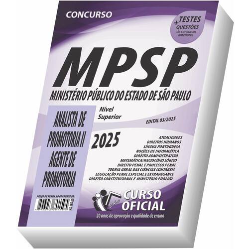 Edição impressa atualizada - elaborada por professores especializados em concursos públicos do curso oficial - são 25 anos de experiência e aprovação dedicados a você, . Cargo: analista de promotoria ii - agente de promotoria Tipo: impressa Páginas: 600 Escolaridade: nível superior Órgão: mp-sp - ministério público do estado de - edital 03/2025 Conteúdo do material: Atualidades Direitos humanos Língua portuguesa Direito administrativo Noções de informática Matemática/raciocínio lógico Direito penal e processo penal Teoria geral das ciências contábeis Legislação penal especial e extravagante Direito constitucional e ministério público Você receberá ainda: Testes, provas e questões de concursos anteriores; Atualizações, se houver alguma mudança no edital; Prova do último concurso; Edital do concurso.