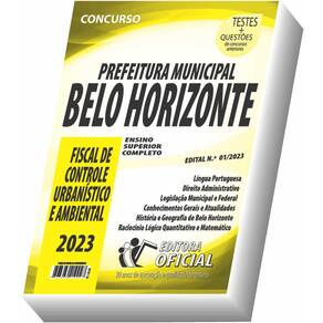 Cargo: fiscal de controle urbanístico e ambiental Tipo: impressa Páginas: 450 Escolaridade: nível superior completo Órgão: prefeitura municipal de belo horizonte - edital 01/2023