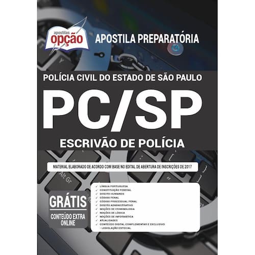 Apostila PC SP - Escrivão de Polícia Civil Apostila para Concurso PC-SP 2021 para o cargo de Escrivão de Polícia Características do Produto - Formato: Impressa Papel A4 - Marca: Apostilas Opção- Autor: Professores Especializados- Modelo: Livro Brochura - Medidas 21x29cm- Quantidade de Páginas: 386- Ano de Publicação: 2021 A Apostila Concurso PC-SP 2021 - Escrivão de Polícia contempla as seguintes matérias: Língua PortuguesaConstituição FederalDireitos HumanosCódigo PenalCódigo de Processo PenalDireito AdministrativoNoções de CriminologiaNoções de LógicaNoções de InformáticaAtualidadesConteúdo Digital Complementar e Exclusivo: Legislação Especial 386 Páginas