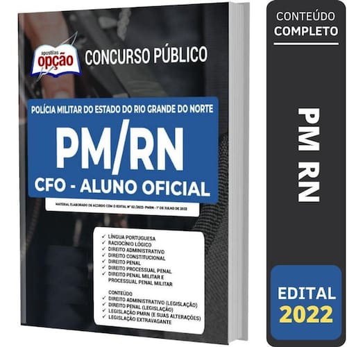 Apostila PM RN - CFO - Aluno Oficial Polícia Militar RN Apostila para Concurso PM-RN - Polícia Militar do Rio Grande do Norte 2022 para o cargo de CFO - Aluno Oficial Op-034jl-22-pm-rn-cfo-imp Concurso PM-RN - Polícia Militar do Rio Grande do Norte 2022 Características do Produto - Formato: Impressa Papel A4 - Marca: Apostilas Opção- Autor: Professores Especializados- Modelo: Livro Brochura - Medidas 21x29cm- Quantidade de Páginas: 394- Edição: Julho/2022 A Apostila Concurso PM-RN - Polícia Militar do Rio Grande do Norte 2022 - CFO - Aluno Oficial contempla as seguintes matérias: Língua PortuguesaRaciocínio LógicoDireito AdministrativoDireito ConstitucionalDireito PenalDireito Processual PenalDireito Penal Militar e Processual Penal MilitarMaterial P - D - F :Direito Administrativo - LegislaçãoDireito Penal - LegislaçãoLegislação PMRN e suas alterações Legislação Extravagante 394 Páginas
