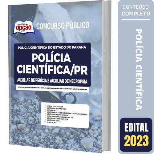 Apostila Polícia Científica PR Auxiliar de Perícia Necropsia Apostila para Polícia Científica - PR 2023 para o cargo de Auxiliar de Perícia e Auxiliar de Necropsia Op-043mr-23-policia-cientifica-pr-auxiliar-imp Concurso Polícia Científica - PR 2023 Você pode imaginar como a sua Vida vai Melhorar depois que você Conquistar a Aprovação neste Concurso Púbico Pois é, mais cedo ou mais tarde, você será Aprovado a e se tornará um Funcionário Público e, isso lhe trará a tão sonhada Estabilidade Profissional e Financeira que tantos almejam. Esta apostila lhe ajudará nesta caminhada, pois, ela é elaborada conforme o Edital. Características do Produto - Formato: Impressa Papel A4 - Marca: Apostilas Opção- Autor: Professores Especializados- Modelo: Livro Brochura - Medidas 21x29cm- Quantidade de Páginas: 736- Edição: Março/2023 A Apostila Concurso Polícia Científica - PR 2023 - Auxiliar de Perícia e Auxiliar de Necropsia contempla as seguintes matérias: Língua PortuguesaNoções de InformáticaMatemáticaNoções Básicas de Biologia e Anatomia HumanasNoções de Medicina LegalRedação e Comunicação OficialNoções de CriminalísticaNoções de FísicaLegislação 736 Páginas