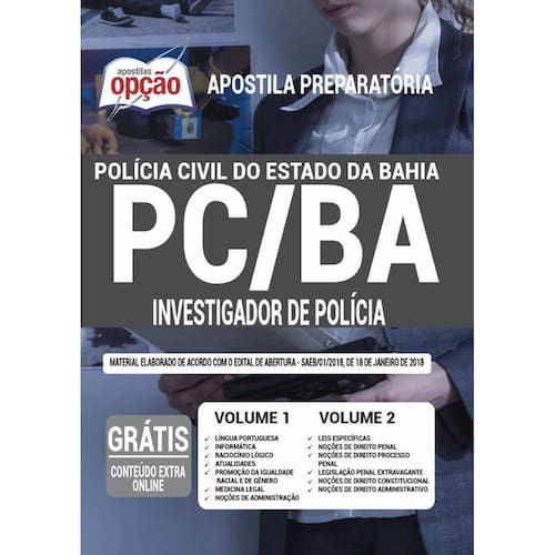 Apostila para Concurso PC - BA 2020 para o cargo de Investigador de Polícia Características do Produto - Formato: Impressa Papel A4 - Marca: Apostilas Opção- Autor: Professores Especializados- Modelo: Livro Brochura - Medidas 21x29cm- Quantidade de Páginas: 1092- Mês e Ano de Publicação: Maio/2020 A Apostila Concurso PC - BA 2020 - Investigador de Polícia contempla as seguintes matérias: Volume 1:Língua PortuguesaInformáticaRaciocínio LógicoAtualidadesDifusão da Igualdade Racial e de GêneroMedicina LegalNoções de Administração Volume 2:Leis EspecíficasNoções de Direito PenalNoções de Direito Processual PenalLegislação Penal ExtravaganteNoções de Direito ConstitucionalNoções de Direito Administrativo 1092 Páginas - Está incluso com a Apostila: Português, Matemática e Raciocínio Lógico Ortografia, Mínimo Múltiplo Comum e Associações Lógicas