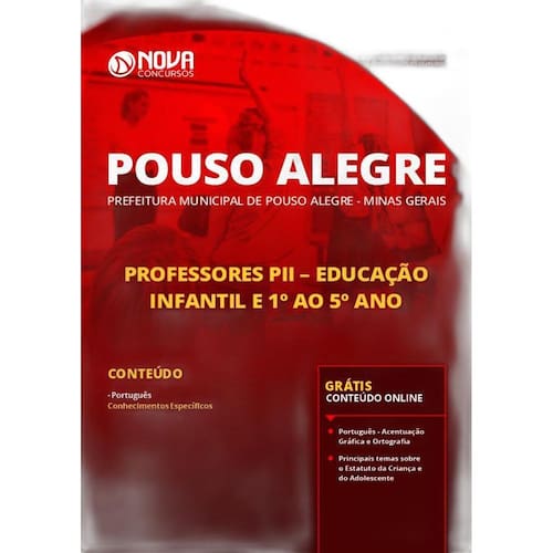 A Apostila para Professor PII Educação Infantil e 1º ao 5º ano do concurso Prefeitura de Pouso Alegre MG 2019 foi rigorosamente elaborada conforme o último edital publicado, o que torna o seu conteúdo completo e atualizado.
