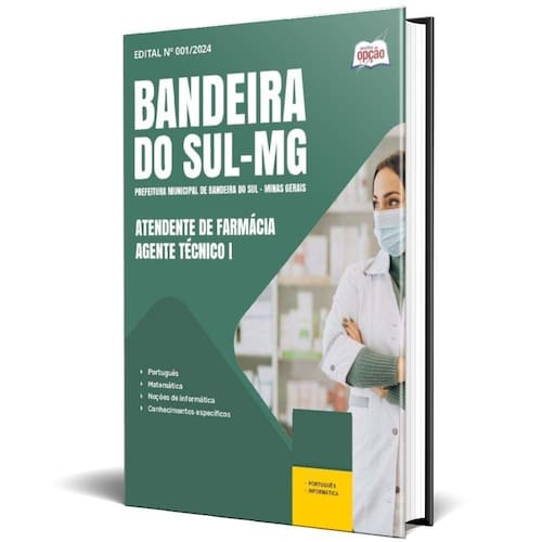 A Apostila Concurso Prefeitura de Bandeira do Sul - MG 2024 - Atendente de Farmácia - Agente Técnico I contempla as seguintes matérias: Português Matemática Noções de Informática Conhecimentos Específicos