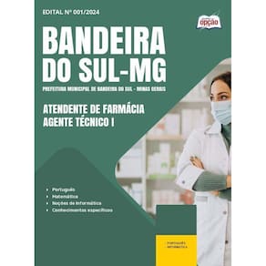 Apostila Prefeitura de Bandeira do Sul MG 2024 - Atendente de Farmácia - Agente Técnico I Apostila para Prefeitura de Bandeira do Sul - MG 2024 para o cargo de Atendente de Farmácia - Agente Técnico I