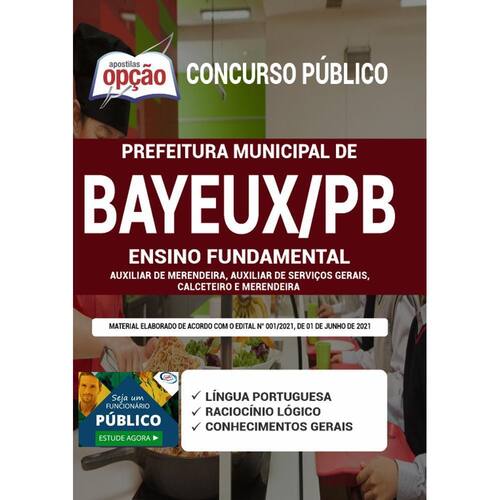 A Apostila Concurso Prefeitura de Bayeux - PB 2021 - Ensino Fundamental contempla as seguintes matérias: Língua Portuguesa Raciocínio Lógico Conhecimentos Gerais
