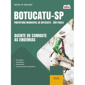 A apostila concurso prefeitura de botucatu - sp 2024 - agente de combate as endemias contempla as seguintes matérias: Português Matemática Atualidades complementar Conhecimentos específicos
