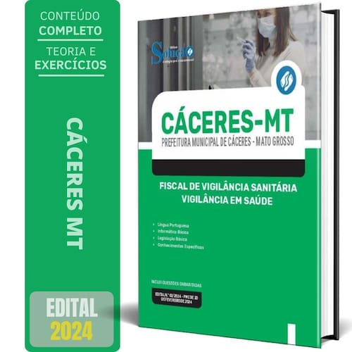 A Apostila Concurso Prefeitura de Cáceres - MT 2024 - Fiscal de Vigilância Sanitária - Vigilância em Saúde contempla as seguintes matérias: