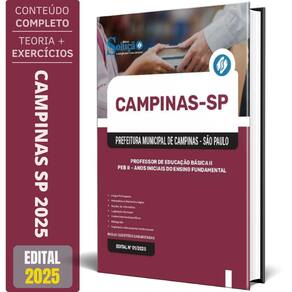 Apostila prefeitura de campinas sp 2025 - professor de educação básica ii - anos iniciais do ensino fundamental Apostila para prefeitura de campinas - sp 2025 para o cargo de professor de educação básica ii - peb ii - anos iniciais do ensino fundamental