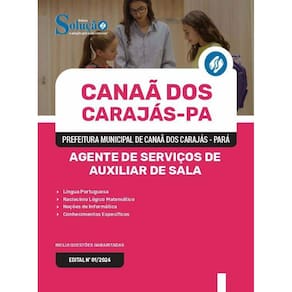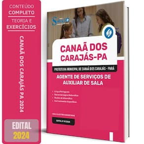 Apostila Prefeitura de Canaã dos Carajás PA 2024 - Agente de Serviços de Auxiliar de Sala Apostila para Prefeitura de Canaã dos Carajás - PA 2024 para o cargo de Agente de Serviços de Auxiliar de Sala