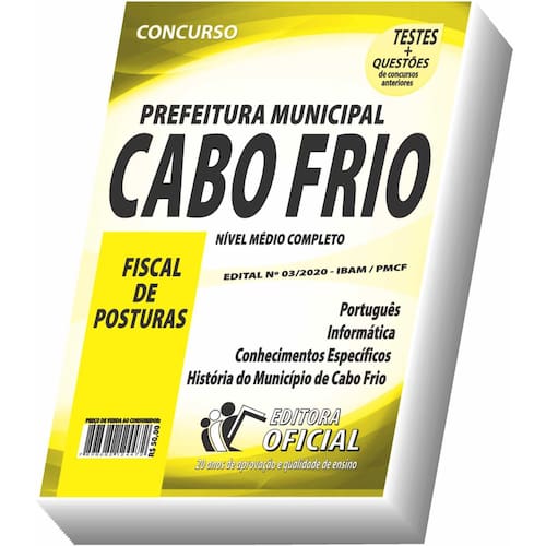 Edição impressa atualizada - elaborada por professores especializados em concursos públicos do curso oficial - são 20 anos de experiência e aprovação dedicados a você, . Cargo: fiscal de posturas Tipo: impressa Páginas: 249 Escolaridade: nível médio completo Órgão: prefeitura municipal de cabo frio - mg - edital 03/2020 Conteúdo do material: Português Informática Conhecimentos específicos História do município de cabo frio Você receberá ainda: Testes, provas e questões de concursos anteriores; Atualizações, se houver alguma mudança no edital; Prova do último concurso; Edital do concurso Marca: Não Informado Ean: 7898682124472