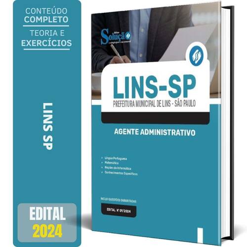 A Apostila Concurso Prefeitura de Lins - SP 2024 - Agente Administrativo contempla as seguintes matérias: