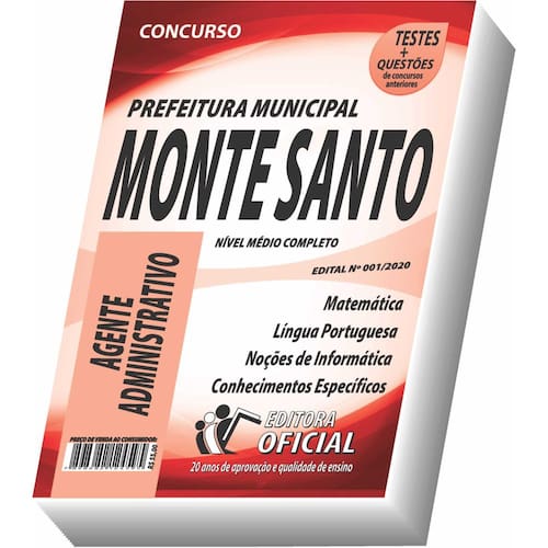 Edição impressa atualizada - elaborada por professores especializados em concursos públicos do curso oficial - são 20 anos de experiência e aprovação dedicados a você, . Cargo: agente administrativo Tipo: impressa Páginas: 267 Escolaridade: nível médio completo Órgão: prefeitura municipal de monte santo - mg - edital nº 001/2020 Conteúdo do material: Matemática Língua portuguesa Noções de informática Conhecimentos específicos Você receberá ainda: Testes, provas e questões de concursos anteriores; Atualizações, se houver alguma mudança no edital; Prova do último concurso; Edital do concurso Marca: Não Informado