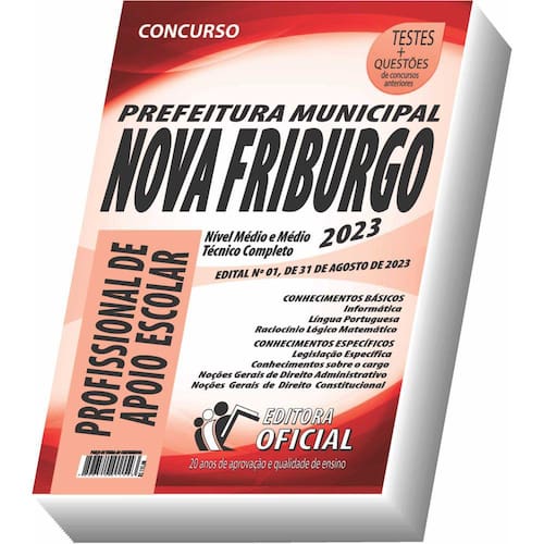 Cargo: Profissional de Apoio Escolar na Educação Inclusiva Tipo: IMPRESSA Páginas: 460 Escolaridade: NÍVEL MÉDIO E MÉDIO TÉCNICO Órgão: PREFEITURA MUNICIPAL DE NOVA FRIBURGO/RJ - EDITAL Nº 01, DE 31 DE AGOSTO DE 2023