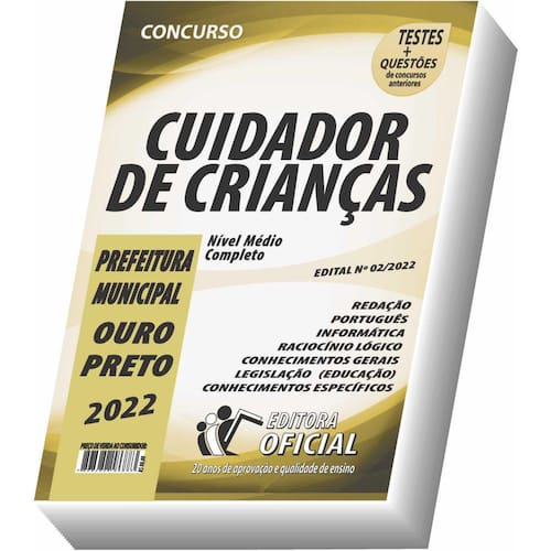Edição impressa atualizada. Elaborada por professores especializados em concursos públicos do curso oficial. São 20 anos de experiência e aprovação dedicados a você, candidato.Cargo: cuidador de criançasEscolaridade: ensino médio completoÓrgão: município de ouro preto/mg - edital nº 02/2022Tipo: impressaPáginas: 360Conteúdo do material:RedaçãoPortuguêsRaciocínio lógicoConhecimentos geraisNoções de informáticaLegislação em educaçãoConhecimentos específicosVocê receberá ainda:Testes, provas e questões de concursos anteriores;Atualizações, se houver alguma mudança no edital;Prova do último concurso;Edital do concurso.