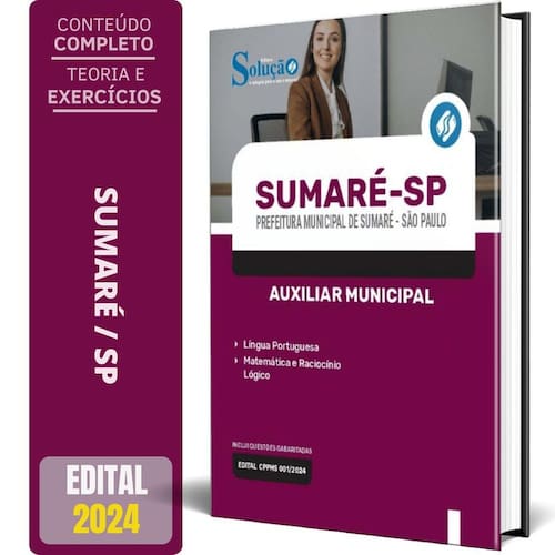 Apostila Prefeitura de Sumaré SP 2024 - Auxiliar Municipal Apostila para Prefeitura de Sumaré - SP 2024 para o cargo de Auxiliar Municipal