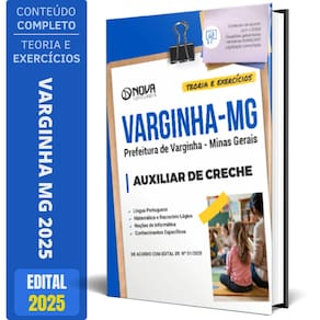 Apostila prefeitura de varginha mg - auxiliar de creche Apostila para prefeitura de varginha - mg 2025 para o cargo de auxiliar de creche -022jl-25-pref-varginha-aux-cre-imp Concurso prefeitura de varginha - mg 2025 Material elaborado de acordo com o edital de agosto/2025 Você pode imaginar como a sua vida vai melhorar depois que você conquistar a aprovação neste concurso público Pois é, mais cedo ou mais tarde, você será aprovado a e se tornará um funcionário público e, isso lhe trará a tão sonhada estabilidade profissional e financeira que tantos almejam. Esta apostila lhe ajudará nesta caminhada, pois, ela é elaborada conforme o edital. Características do produto - formato: impressa papel a4 - marca: nova concursos - autor: professores especializados - modelo: livro brochura - medidas 21x29cm - quantidade de páginas: 254 - edição: agosto/2025 A apostila concurso prefeitura de varginha - mg 2025 - auxiliar de creche contempla as seguintes matérias: Língua portuguesa Matemática e raciocínio lógico Noções de informática Conhecimentos específicos 254 páginas Marca: Não Informado
