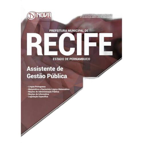 A Apostila Prefeitura do Recife - PE 2018 - Assistente de Gestão Pública foi elaborada de acordo com o Edital 01/2018 do concurso, por professores especializados em cada matéria e com larga experiência em concursos.