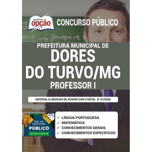 A Apostila Concurso Prefeitura de Dores do Turvo - MG 2020 - Professor I contempla as seguintes matérias: Língua Portuguesa Matemática Conhecimentos Gerais Conhecimentos Específicos