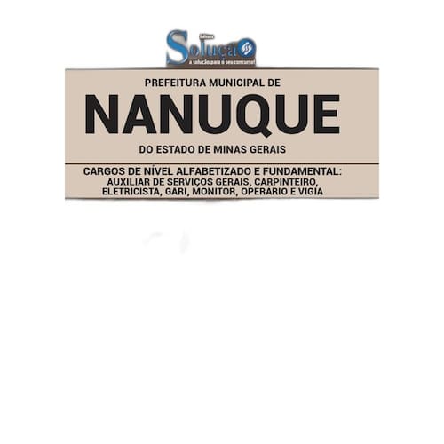 Apostila para Concurso Prefeitura de Nanuque - MG 2020 para o cargo de Ensino Alfabetizado e Fundamental: Auxiliar de Serviços Gerais, Carpinteiro, Eletricista, Gari, Monitor, Operário e Vigia