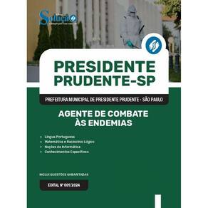 A Apostila Concurso Prefeitura de Presidente Prudente - SP 2024 - Agente de Combate às Endemias contempla as seguintes matérias: Língua Portuguesa Matemática e Raciocínio Lógico Noções de Informática Conhecimentos Específicos