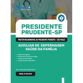 Apostila Prefeitura de Presidente Prudente SP 2024 - Auxiliar de Enfermagem Saúde da Família Apostila para Prefeitura de Presidente Prudente - SP 2024 para o cargo de Auxiliar de Enfermagem Saúde da Família