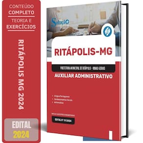 Apostila Prefeitura de Ritápolis MG 2024 - Auxiliar Administrativo, Auxiliar de Biblioteca, Auxiliar de Secretaria Esc Apostila para Prefeitura de Ritápolis - MG 2024 para o cargo de Auxiliar Administrativo, Auxiliar de Biblioteca, Auxiliar de Secretaria Escolar, Educador Social e Recepcionista