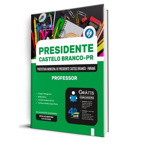 A apostila concurso prefeitura de presidente castelo branco-pr 2025 - professor contempla as seguintes matérias: