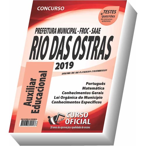 Edição impressa atualizada 2019 - elaborada por professores especializados em concursos públicos do curso oficial - são 20 anos de experiência e aprovação dedicados a você, . Cargo: auxiliar educacional Tipo: impressa - física Páginas: 206 Edição: 2019 Escolaridade: ensino médio completo Órgão: prefeitura municipal de rio das ostras - rj - concurso público - editais nº 01/02/03/2019 Conteúdo do material: Português Matemática Conhecimentos gerais Lei orgânica do município Conhecimentos específicos Você receberá ainda: Testes, provas e questões de concursos anteriores; Atualizações, se houver alguma mudança no edital; Prova do último concurso; Edital do concurso. Marca: Não Informado