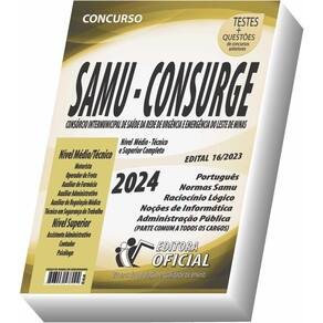 Edição impressa atualizada - elaborada por professores especializados em concursos públicos do curso oficial - são 23 anos de experiência e aprovação dedicados a você, . Cargos: nível médio/técnico - motorista - operador de frota - auxiliar de farmácia - auxiliar administrativo - auxiliar de regulação médica - técnico em segurança do trabalho - nível superior - assistente administrativo - contador - psicólogo Tipo: impressa Páginas: 244 Escolaridade: nível médio/técnico e nivel superior Órgão: concurso público do consórcio intermunicipal de saúde da rede de urgência e emergência do leste de minas - consurge - samu - edital nº 16/2023 Conteúdo do material: Português Normas samu Raciocínio lógico Administração pública Noções de informática parte comum a todos os cargos Você receberá ainda: Testes, provas e questões de concursos anteriores; Atualizações, se houver alguma mudança no edital; Prova do último concurso; Edital do concurso. Marca: Não Informado Ean: 7908831300043