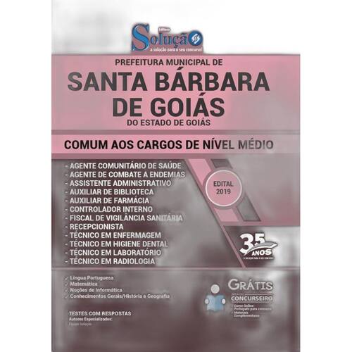 A Apostila para Comum aos Cargos de Nível Médio do concurso Prefeitura de Santa Bárbara de Goiás - GO 2019 foi rigorosamente elaborada conforme o edital, o que torna o seu conteúdo completo e atualizado. Marca: Editora Solucao