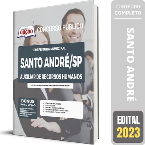 Apostila Santo André SP - Auxiliar de Recursos Humanos apostila para Prefeitura de Santo André - SP 2023 para o cargo de Auxiliar de Recursos Humanos Op-065ma-23-santo-andre-sp-aux-rh-imp Concurso Prefeitura de Santo André - SP 2023 Você pode imaginar como a sua Vida vai Melhorar depois que você Conquistar a Aprovação neste Concurso Púbico Pois é, mais cedo ou mais tarde, você será Aprovado a e se tornará um Funcionário Público e, isso lhe trará a tão sonhada Estabilidade Profissional e Financeira que tantos almejam. Esta apostila lhe ajudará nesta caminhada, pois, ela é elaborada conforme o Edital. Características do Produto - Formato: Impressa Papel A4 - Marca: Apostilas Opção- Autor: Professores Especializados- Modelo: Livro Brochura - Medidas 21x29cm- Quantidade de Páginas: 302- Edição: Maio/2023 A Apostila Concurso Prefeitura de Santo André - SP 2023 - Auxiliar de Recursos Humanos contempla as seguintes matérias: Língua PortuguesaMatemáticaNoções de InformáticaConhecimentos EspecíficosLegislação Trabalhista 302 Páginas