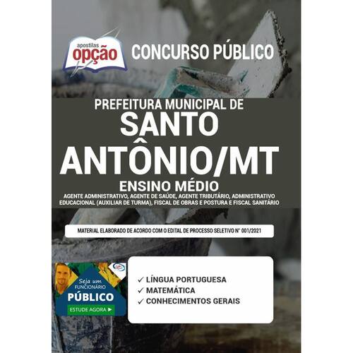 A Apostila Concurso Prefeitura de Santo Antônio do Leste - MT 2021 - Ensino Médio contempla as seguintes matérias: