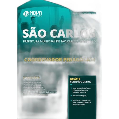 A Apostila para Coordenador Pedagógico do concurso Prefeitura de São Carlos SP 2019 foi rigorosamente elaborada conforme o último edital publicado, o que torna o seu conteúdo completo e atualizado.