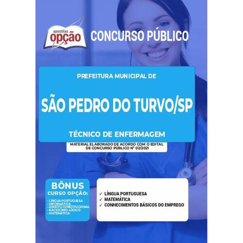 Apostila São Pedro do Turvo SP Técnico de Enfermagem Apostila para Concurso Prefeitura de São Pedro do Turvo - SP 2021 para o cargo de Técnico de Enfermagem