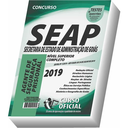 Edição impressa atualizada 2019 - elaborada por professores especializados em concursos públicos do curso oficial - são 20 anos de experiência e aprovação dedicados a você, . Cargo: agente de segurança prisonal Tipo: impressa Páginas: 480 Edição: 2019 Escolaridade: ensino superior completo Órgão: governo do estado de goiás - secretaria de estado de administração sead - edital nº 01/2019 Formato: a4 Volume: 01 Edição: 2ª edição Idioma: português Ano de lançamento: 2019 Capa: couchê duro Editora: curso oficial Conteúdo do material: Redação oficial Noções de direito Direitos humanos Raciocínio lógico Língua portuguesa Ética no serviço público Conhecimentos específicos História e geografia de goiás Você receberá ainda: Testes, provas e questões de concursos anteriores; Atualizações, se houver alguma mudança no edital; Prova do último concurso; Edital do concurso.