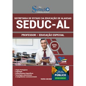A Apostila Concurso SEDUC-AL 2021 - Professor - Educação Especial contempla as seguintes matérias: Língua Portuguesa Legislação Tecnologias Educacionais e Competências Socioemocionais Conhecimentos Específicos
