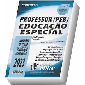 Edição Impressa Atualizada – Elaborada por professores especializados em concursos Públicos do Curso Oficial – São 23 anos de experiência e aprovação dedicados a você, candidato.Cargo: PROFESSOR DE EDUCAÇÃO BÁSICA (PEB) - EDUCAÇÃO ESPECIALTipo: IMPRESSAPáginas: 410Escolaridade: Nível Superior CompletoÓrgão: SECRETARIA DE ESTADO DE EDUCAÇÃO DE MINAS GERAIS - SEE - MG - EDITAL SEPLAG/SEE Nº 03/2023Conteúdo do Material:CONHECIMENTOS ESPECÍFICOSLEGISLAÇÃO EDUCACIONALDIREITOS HUMANOSLÍNGUA PORTUGUESALiteratura - Redação OficialRACIOCÍNIO LÓGICO MATEMÁTICOVOCÊ RECEBERÁ AINDA:Testes, provas e questões de concursos anteriores;Atualizações, se houver alguma mudança no edital;Prova do último concurso;Edital do Concurso.