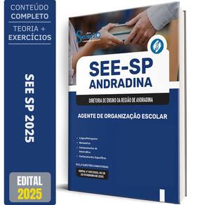 Apostila see sp andradina 2025 - agente de organização escolar Apostila para see-sp andradina 2025 para o cargo de agente de organização escolar