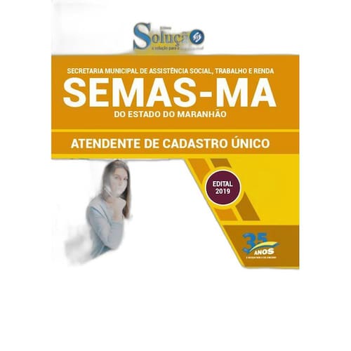 Não Perca tempo, compre a sua Apostila SEMAS 2019 - Atendente de Cadastro Único, a sua Aprovação é a nossa Satisfação Marca: Editora Solucao
