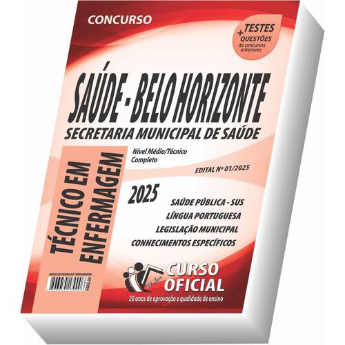 Edição impressa atualizada - elaborada por professores especializados em concursos públicos do curso oficial - são 25 anos de experiência e aprovação dedicados a você, . Cargo: técnico em enfermagem Tipo: impressa Páginas: 238 Escolaridade: nível médio/técnico Órgão: secretaria municipal de saúde de belo horizonte - edital 1/2025 Conteúdo do material: Sus-saúde pública Língua portuguesa Legislação municipal Conhecimentos específicos Você receberá ainda: Testes, provas e questões de concursos anteriores; Atualizações, se houver alguma mudança no edital; Prova do último concurso; Edital do concurso. Marca: Não Informado