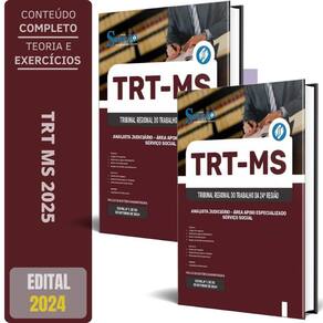 A apostila concurso trt-ms 2025 - analista judiciário - área apoio especializado - serviço social contempla as seguintes matérias: Volume i: Língua portuguesa Raciocínio lógico-matemático Direito constitucional; Noções de direito administrativo Volume ii: Direito do trabalho Direito processual do trabalho Conhecimentos específicos Material complementar: Legislação institucional
