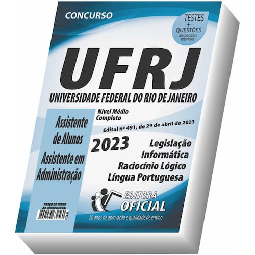 Edição Impressa Atualizada – Elaborada por professores especializados em concursos Públicos do Curso Oficial – São 23 anos de experiência e aprovação dedicados a você, candidato.Cargos: Assistente de Alunos - Assistente em AdministraçãoTipo: IMPRESSAPáginas: 268Escolaridade: Nível Médio CompletoÓrgão: UFRJ - Universidade Federal do Rio de Janeiro - Edital nº 491, de 29 de abril de 2023Conteúdo do Material:LegislaçãoRaciocínio lógicoLíngua PortuguesaConhecimento de informáticaVOCÊ RECEBERÁ AINDA:Testes, provas e questões de concursos anteriores;Atualizações, se houver alguma mudança no edital;Prova do último concurso;Edital do Concurso.