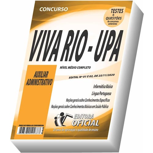 Edição impressa atualizada - elaborada por professores especializados em concursos públicos do curso oficial - são 20 anos de experiência e aprovação dedicados a você, . Cargo: auxiliar administrativo Tipo: impressa Páginas: 305 Escolaridade: nível médio completo Órgão: os viva rio - unidade de pronto atendimento upa - editais de processo seletivo público n° 01 e 02 25/11/2020 Conteúdo do material: Informática básica Língua portuguesa Noções gerais sobre conhecimentos específicos Noções gerais sobre conhecimentos básicos em saúde pública Você receberá ainda: Testes, provas e questões de concursos anteriores; Atualizações, se houver alguma mudança no edital; Prova do último concurso; Edital do concurso Marca: Não Informado