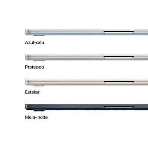 Apple Macbook Air 15", M4, com CPU de 10 núcleos, GPU de 10 núcleos, 16GB RAM, 512GB SSD - Prata